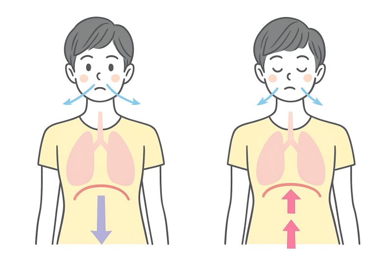 浅い呼吸が続くと、体はずっと緊張モードのまま。産後は寝不足や不安で呼吸が浅くなりがちですが、ゆっくり息を吐くことで自律神経が落ち着き、筋肉もゆるみやすくなります。